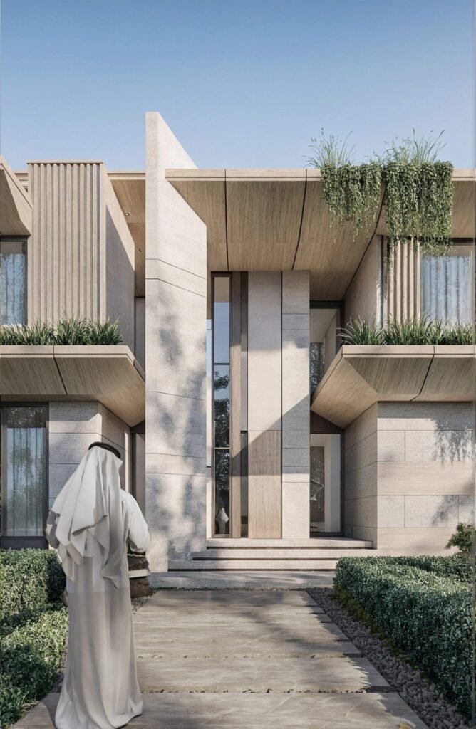 Alt text: Modern house entrance design Pakistan, ACCO Construction.