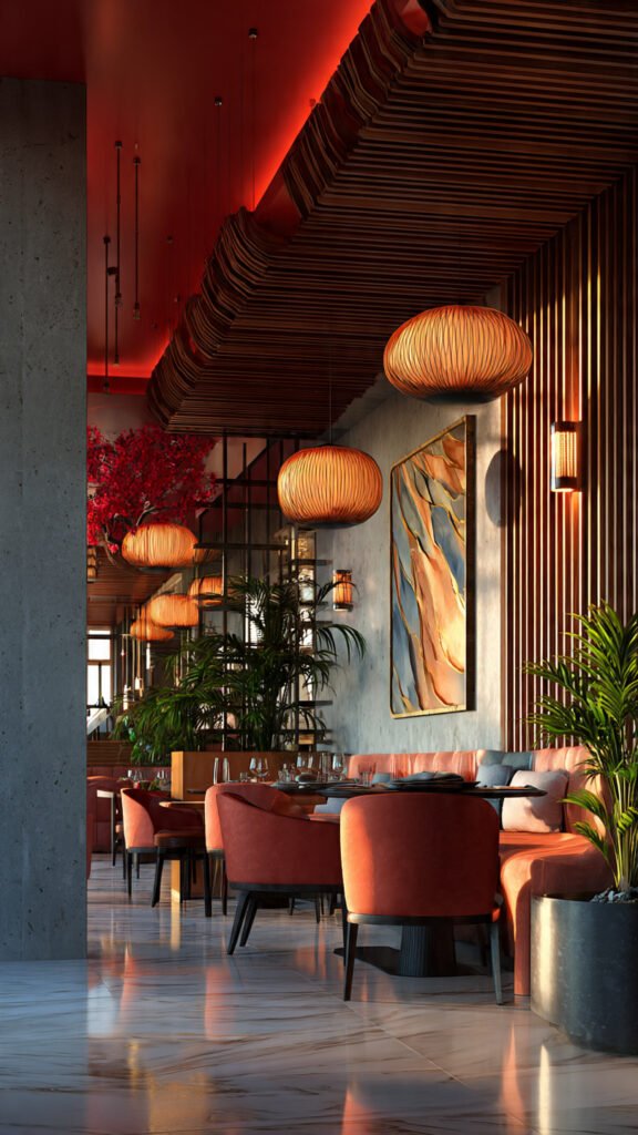 Efficient space planning is one of the most important aspects of restaurant interior design. A well-planned layout ensures that customers feel comfortable while staff can move easily and serve efficiently. Our team analyzes the available space and designs layouts that optimize seating capacity without compromising comfort.
